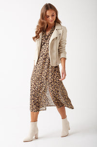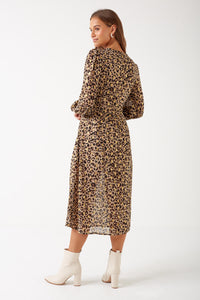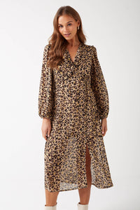 Danni Leopard Print Midi Dress in Brown