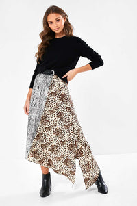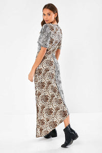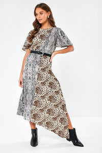 Refresh your animal print collection with this contrast leopard and snakeskin print midi dress. This asymmetric style dress is ideal to take you from day to night. Style with ankle boots and a belt for a defined silhouette. Wear with heeled sandals and statement earrings for an evening look.