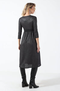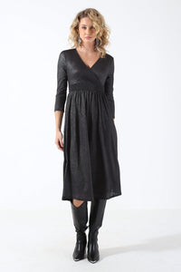 New Pella L/S Foil Wrap Dress in Dark Grey and Silver