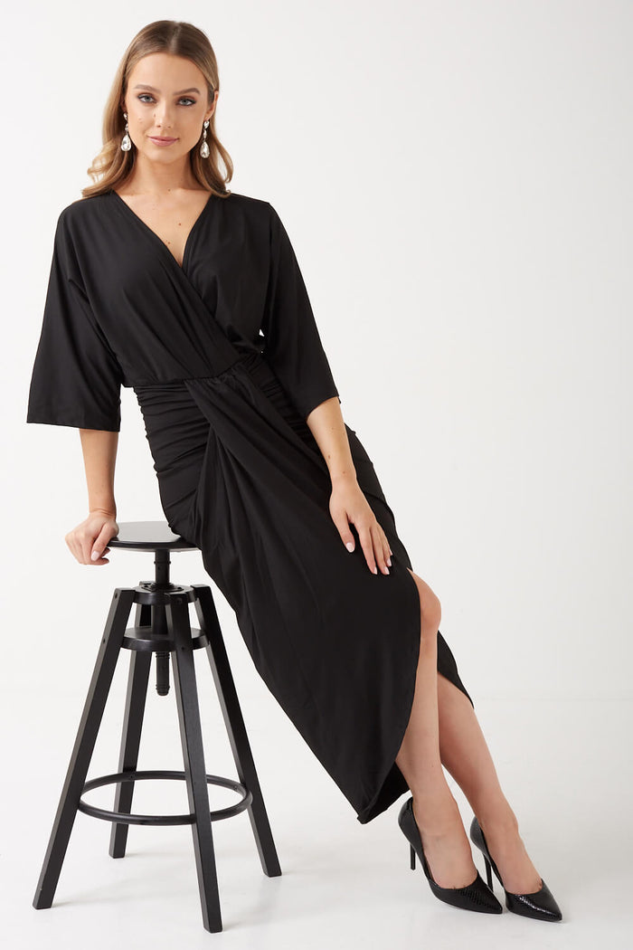 Aida Cross Neck Side Split Midaxi Dress in Black
