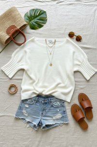 Boat Neck Short Sleeve Knit Sweater in Cream