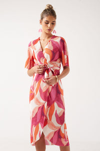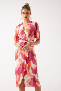 Nancy Floral V-Neck Pleated High-Low Midi Dress in Pink