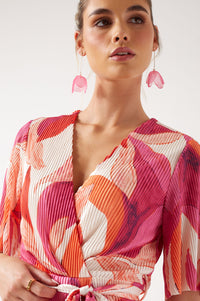 In lovely colour combinations, the Nancy Midi Dress arrives in a beautiful floral pattern. Its pleated fabric adds extra sophistication to a classy style that will be a hit on any occasion you choose to wear it. Style it with neutral champagne or contrasting heels, add a clutch, a chunky bracelet and earrings to finish the outfit.