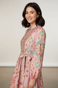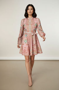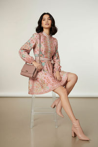 Embrace effortless charm with our Printed Tie-Waist Mini Dress, featuring a vibrant floral and paisley print that's perfect for any occasion. Designed for comfort and versatility, this long-sleeve dress with a flattering tie-waist transitions beautifully from day to night.