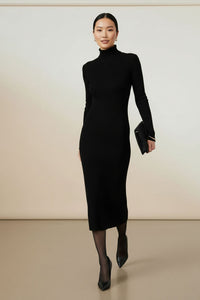 Embrace effortless sophistication with our Ribbed Knit Turtleneck Midi Dress, designed for versatile styling from office to evening. Its comfortable, flattering fit and timeless design make it your go-to for chic, everyday elegance.