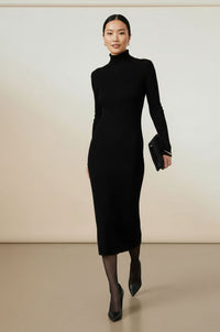Ribbed Knit Turtleneck Midi Dress