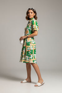 Short-Sleeved Abstract Print Shirt Dress