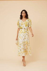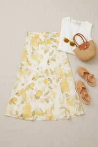 Infuse your wardrobe with summer charm in our Violette Lemon Print Midi Skirt. Its bright, breezy design and comfortable fit make it perfect for effortless day-to-night styling, whether paired casually or dressed up.