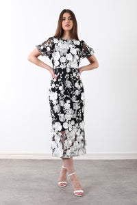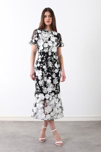 Gwen Lace Midi Dress in Black