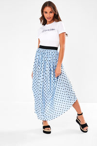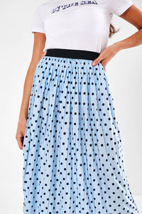 Disco Polka Dot Plisse Skirt in Blue