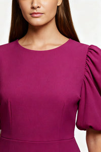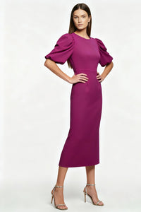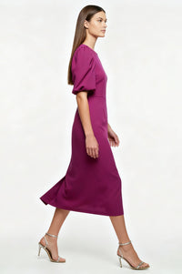 Faye Structured Bodycon Midi Dress in Magenta