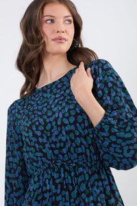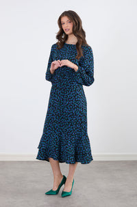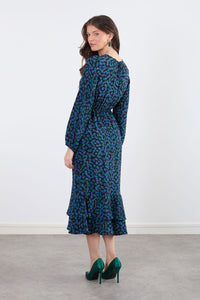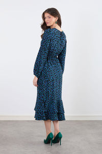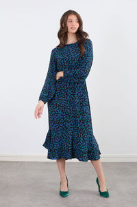 Felicity Ruffle Dress in Blue Green Print