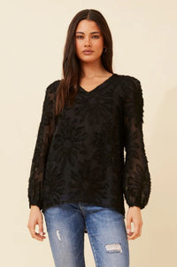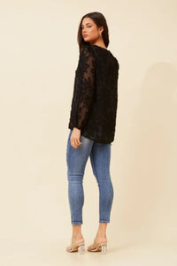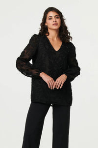 Go for an elegant lace look with this stylish top. It has a semi sheer texture and embroidered lace details, for an eye-catching finish that's perfect for special occasions such as Christenings and parties. It also has a v-neck, long sleeves and a hip length hem.