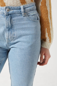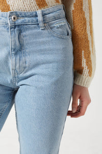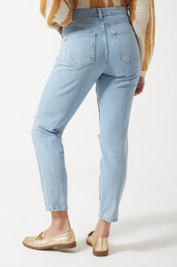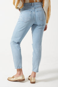 Jagger High Rise Distressed Mom Jeans in Light Blue Denim