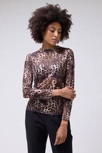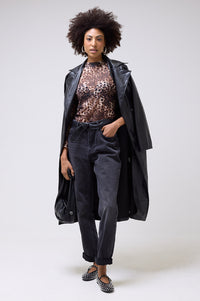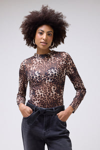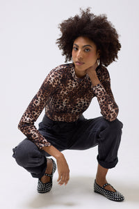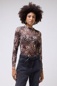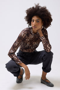 The perfect on-trend top for a cool night-out outfit is here! The Jass top features this season's main print and a mesh sheer fabric, high neck and long sleeves. Wear it tucked in with black leather trousers and heels for the ultimate it-girl look.