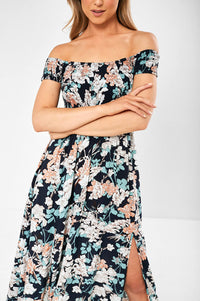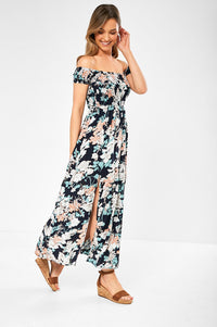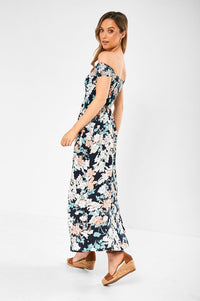 New in from Stella is this navy dress. Featuring a lightweight fabric, floral print, two leg slits and elasticated top for the ultimate comfort, style with sliders and a denim jacket for a cute Summer look.