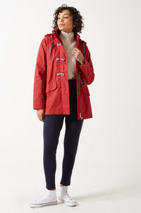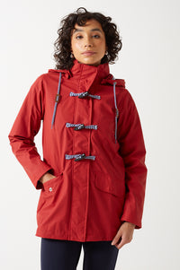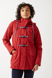 You won't have to sacrifice style for practicality with this heavy duty PU coated red raincoat. Featuring two deep patch pockets and contrast navy and striped lining adding an extra note of style. A relaxed slightly looser fit ensures you are kept comfortable and ideal for layering over tops.