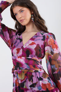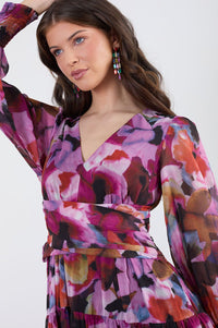 KARLEE FLORAL LONG SLEEVE RUCHED MAXI DRESS IN PINK
