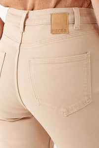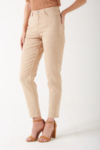 Kesia High Rise Mom Jeans in Beige
