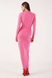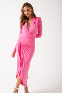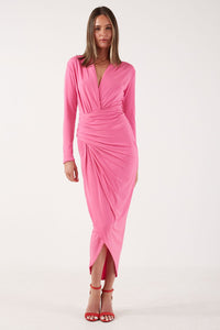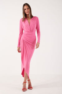Kim Deep V Midi Dress in Cerise