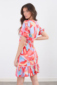 Leah Short Sleeve Printed Dress in Red