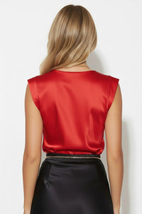 Lia Satin Cowl Neck Top in Red
