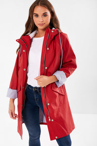 A raincoat is a necessity for the changeable Autumn days. This long line raincoat features contrast striped lining and press stud fastening. A great basic to wear over your everyday basics.