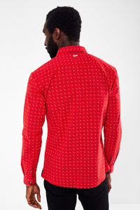 In an allover print on a bright red base, this shirt flourishes a playful vibe. Pair with trousers or jeans to complete the look.