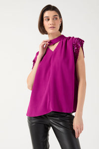 Morgan Sequin Trim Top in Purple