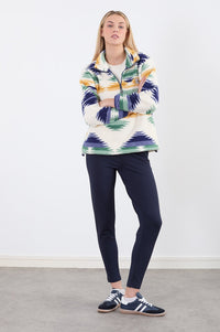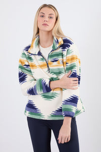 Polly Half Zip Printed Fleece in Blue Abstract