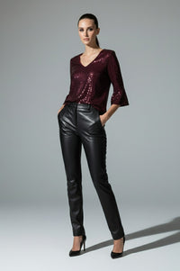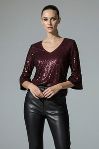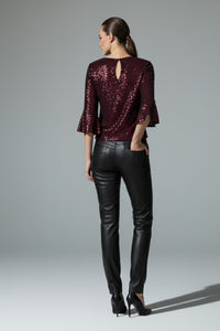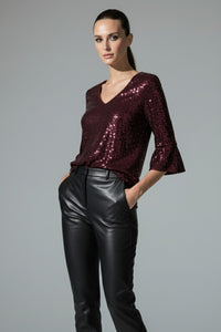 Riley Sequin Top in Burgundy