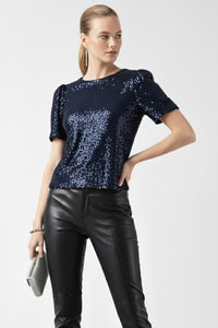 Elevate your wardrobe with our stunning Navy Ruby Sequin Top. Available in sizes 8, 10, 12, 14, and 16, this stylish top adds a touch of glamour to any outfit. Perfect for special occasions or a night out!