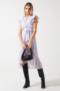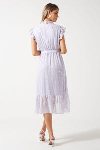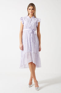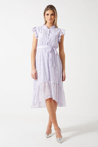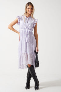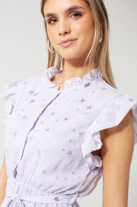 New in from John Zack is this star print lilac dress. Featuring frill detailing, a lined design with a chiffon overlay, style this dress with heels and accessories for an occasion-worthy look.