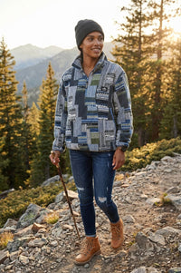 The Nexus Sherpa Fleece Pullover in Blue Abstract