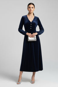 Una Velvet Dress in Navy