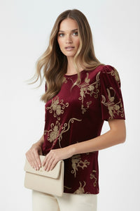 Velvet Emb Top in Burgundy from Marc Angelo.