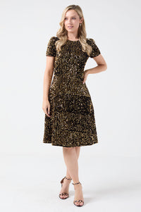 Carly Sequin A-Line Dress in Black Gold
