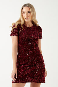 Add some sparkles to your dress collection with this dreamy party dress. Featuring a green sequin material on a velvet like base, designed close to the body offering a more structured shape. Style with statement earrings and barely there heels for a party look that won't go unnoticed.