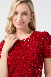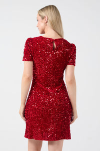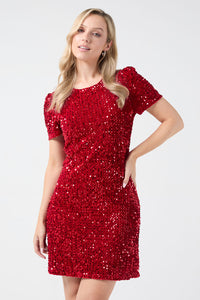 Add some sparkles to your dress collection with this dreamy party dress. Featuring a green sequin material on a velvet like base, designed close to the body offering a more structured shape. Style with statement earrings and barely there heels for a party look that won't go unnoticed.