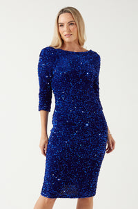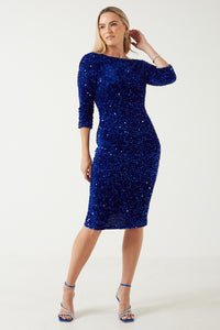 Patsy Sequin Bodycon Dress with Open Back in Blue