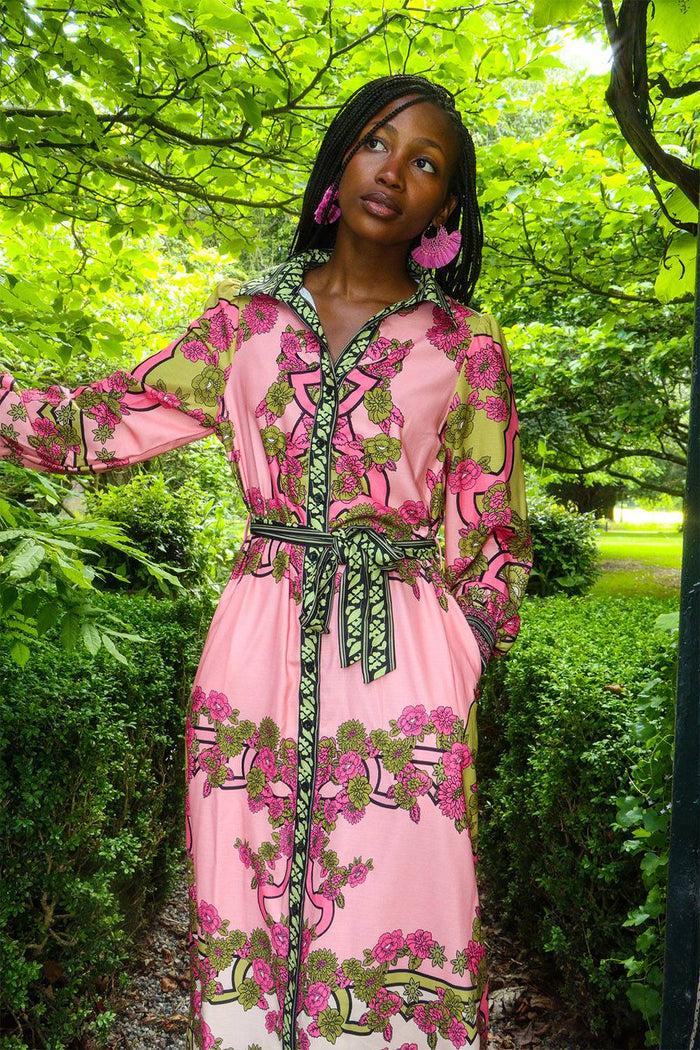Sammy Abstract Print Collared Shirt Midi Dress in Pink