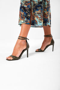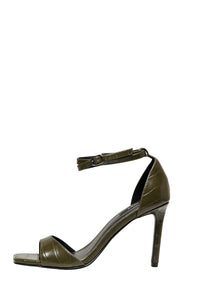 These heeled sandals are the perfect neutral footwear choice to complement any outfit. Featuring a croc upper, and a simple strap design. Ideal for styling with denims, dresses or with our coated margo trousers.