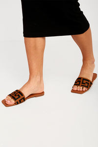 Moira Monagram Square Toe Sliders in Camel