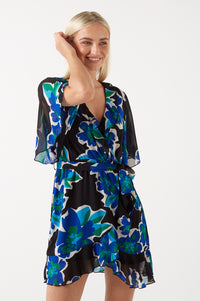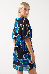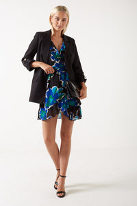 Bella Ruffle Printed Short Dress in Blue