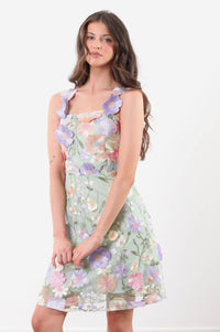 Shauna Lace Applique Short Dress in Green