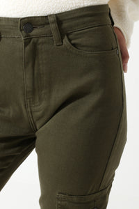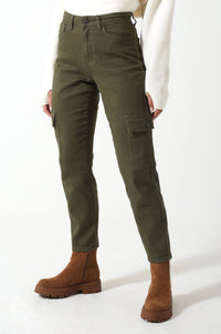 Moni HW Cargo Ankle Length Trousers in Khaki