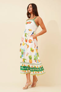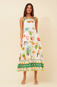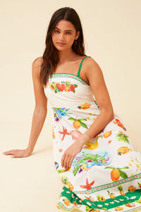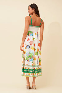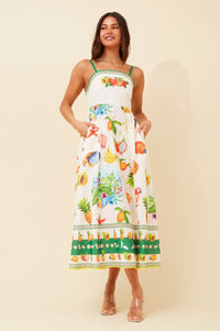 Dress for the warm weather with this sleeveless dress. It has dainty cami straps and a flattering skater shape, with a hem that ends at midi length. It even has pockets! Wear it with heels for a summer wedding.