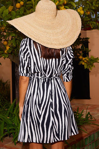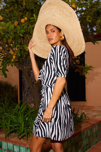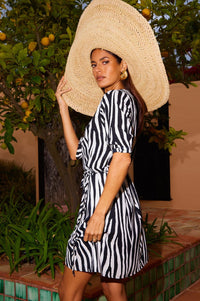 Marley Mini Dress In Monochrome Zebra Print in Black and White