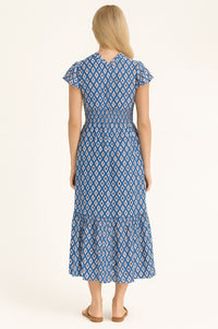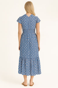 Featuring a gently cinched waist with smocked detailing, it accentuates your natural curves while providing a flexible fit. The dress flows gracefully to an ankle-length hem, creating an elegant, elongated look perfect for any occasion—from casual outings to weekend brunches.