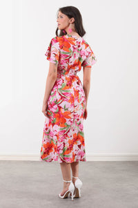 The stunning floral print and midi length create a versatile look that effortlessly transitions from brunch with friends to a romantic evening out. The comfortable fit and flattering silhouette make this a wardrobe staple you'll reach for again and again.